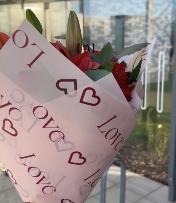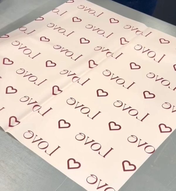 Paper HM11273 58x58cm, waterproof, soft pink with print “Love”, 1 pack – 20 sheets, ideal for flowers and bouquets